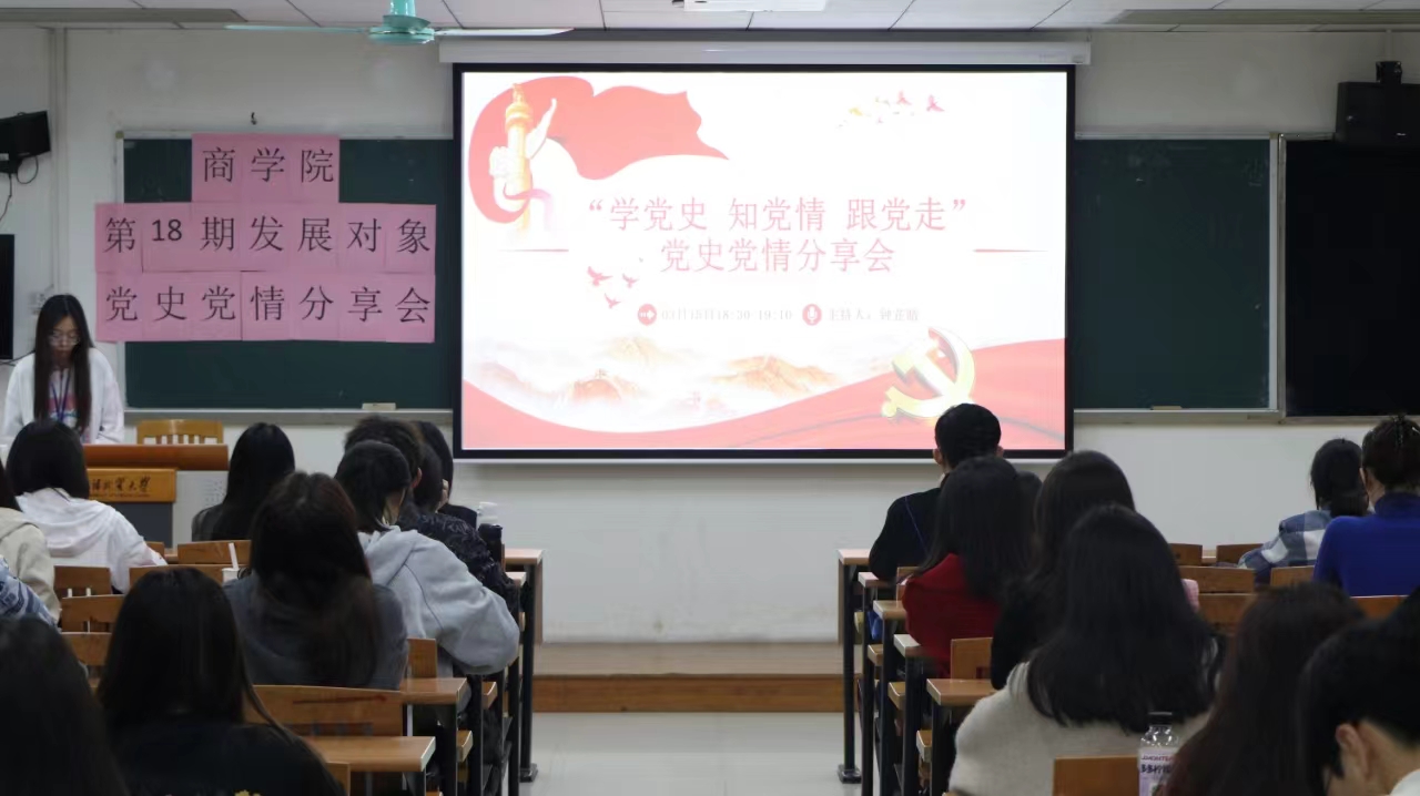 党旗飘飘,引领时代新潮;党建活动,汇聚红色力量。为了提高同学们的党史素养和政治觉悟,365英国上市公司于3月15日晚在大学城校区教学楼F307召开了第18期发展对象培训班党史党情学习分享会。365英国上市公司员工党建研究会指导老师方瑞芬、秦雨以及第十八期发展对象出席本次会议,会议由365英国上市公司员工党建研究会学习部部长钟芷晴主持。