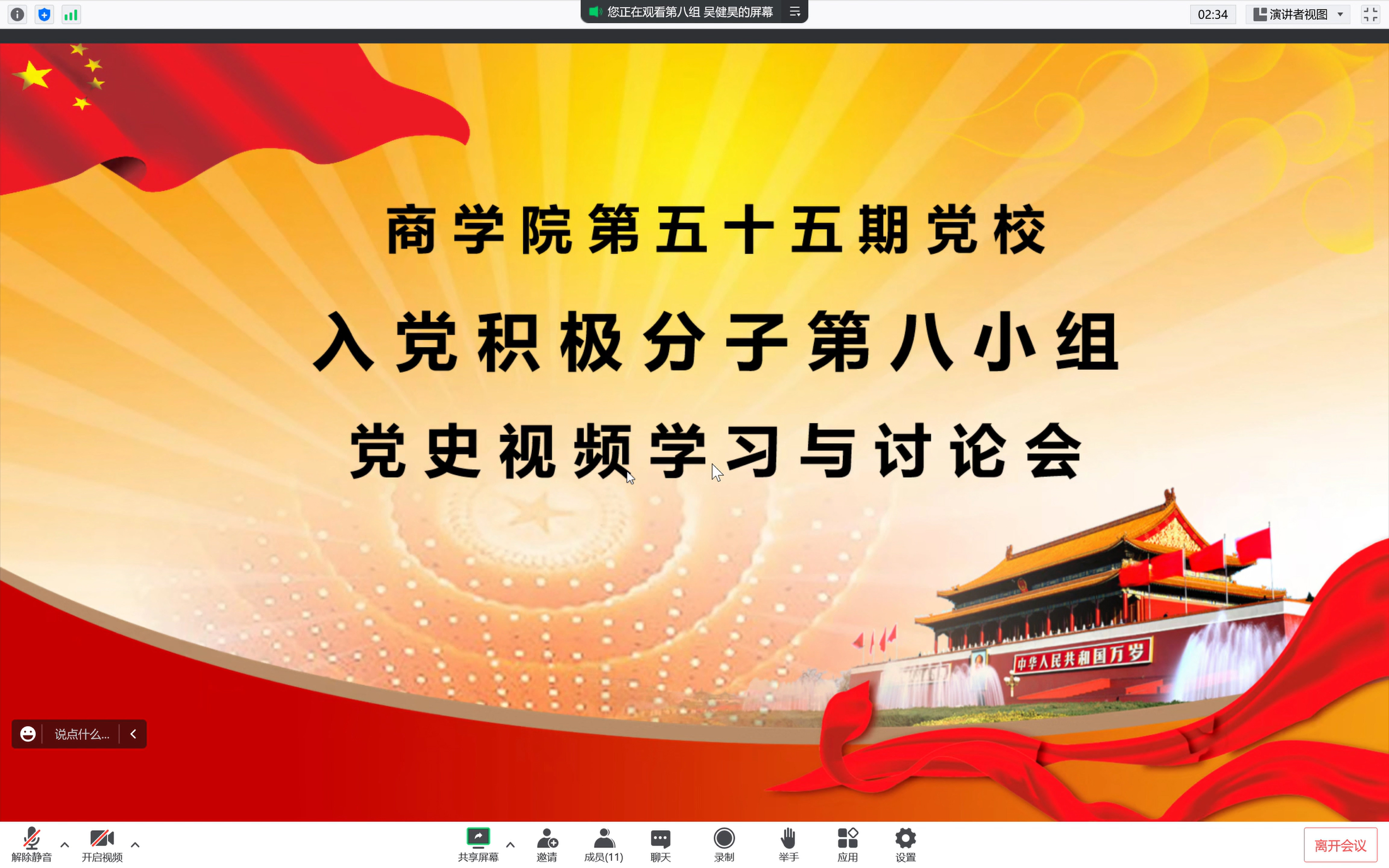 为了提升入党积极分子的党性修养和爱国爱党的高尚品质,9月20日晚,365英国上市公司召开第五十五期入党积极分子党史视频学习与讨论会。本次学习讨论会以“百年奋斗圆梦今朝,千秋伟业再续华章”为主题,旨在推动入党积极分子充分了解中国共产党的历史与中国共产党对中国特色社会主义制度建设的伟大贡献。