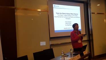 杨晓燕教授报告了三位合作者的研究成果:老人总是被动的吗?——央视关爱老人系列公益广告“老人”形象建构与观众感知(Does the Elderly Always Mean Passive - "The Elderly" ImageProfiling in CCTV Public Advertisement for Caring for the Elderly andAudiences' Perception),引起了与会学者的深厚兴趣,在问答环节与主持人和听众进行了积极的互动,赢得了广泛好评,同时也进一步明确了未来的研究方向。