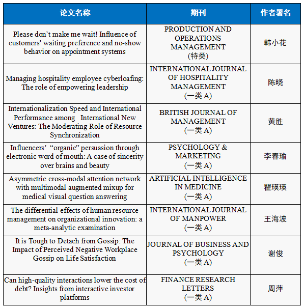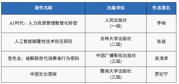 2023年,公司教师(一作或通讯)共发表公司认定的二类A级以上学术论文36篇,其中特类1篇,一类A级8篇,一类B级9篇,二类A级18篇;共获得纵、横向课题立项14项,其中国家级项目2项,教育部2项,到校科研经费共计171.5万元,其中横向企业课题总经费67.5万元;共在公司认定的三级以上出版社出版专著6部,其中一级出版社1部,二级出版社3部,三级出版社2部;共4份研究报告被省级及以上政府或领导采纳或批示,其中1份报告被中央有关部门采用。