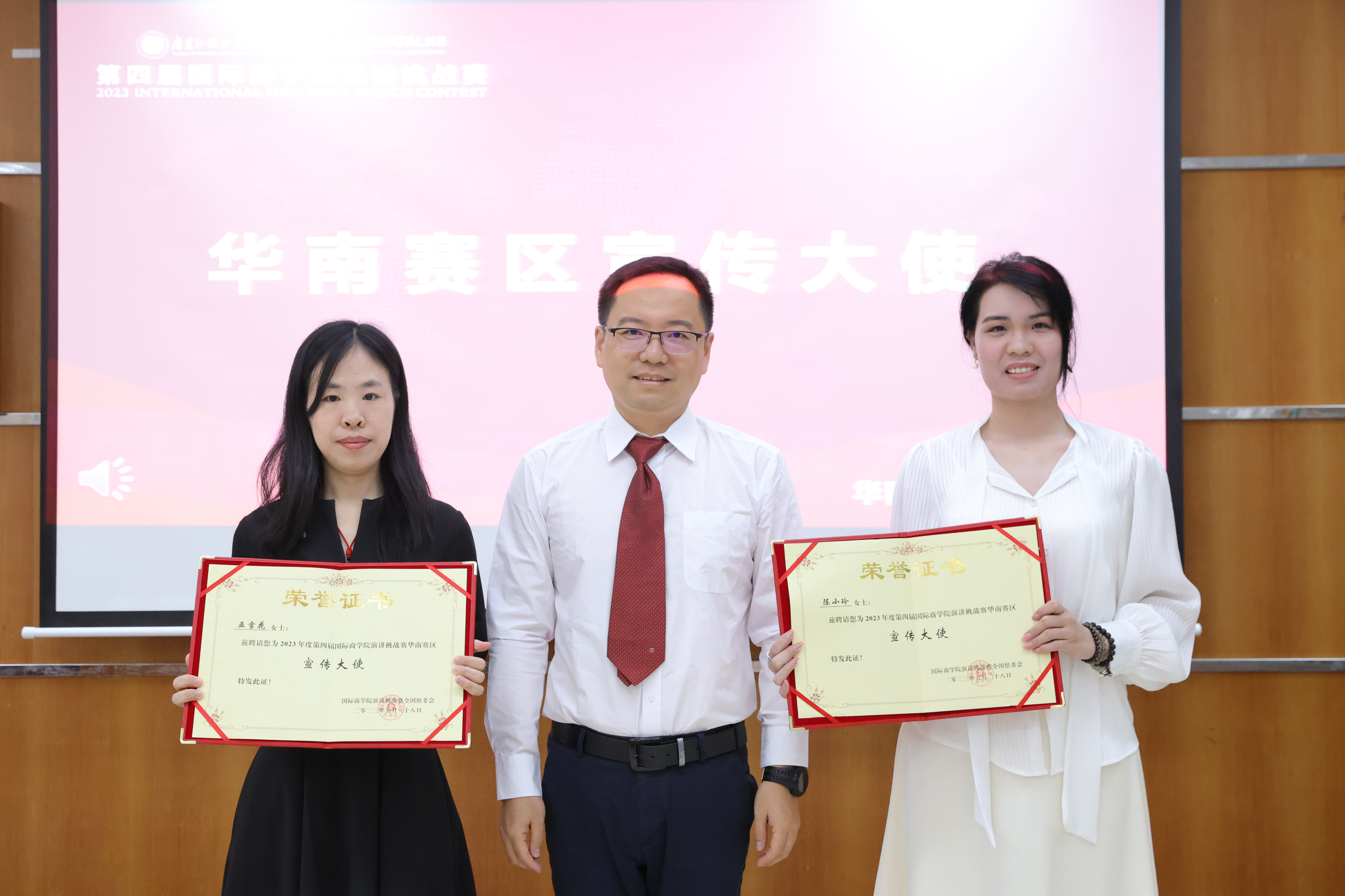 袁登华、蒋涌分别为第四届国演赛华南赛区推广大使徐健君、宣传大使陈小玲和巫雪花颁发荣誉证书。