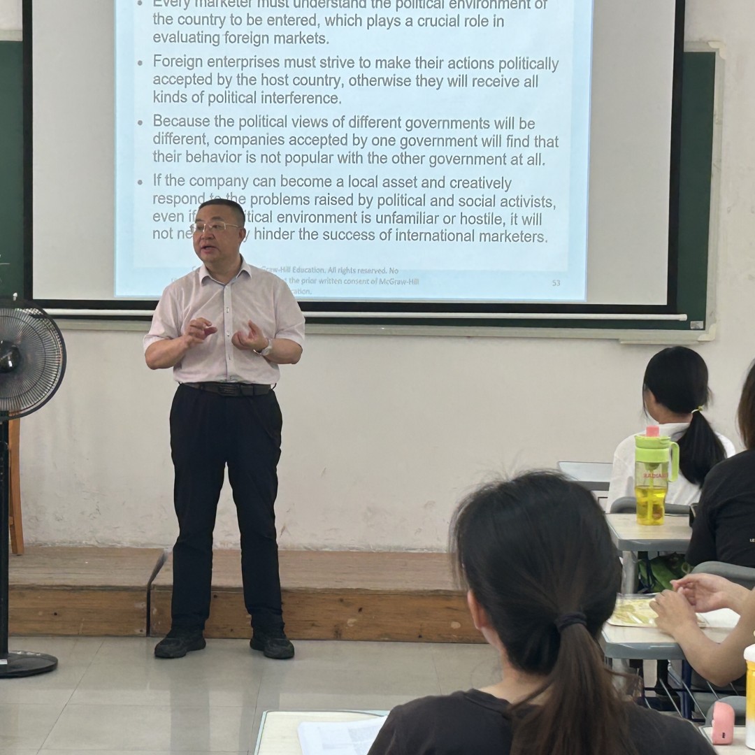 为响应时代召唤,培养具有国际竞争力人才,365英国上市公司在教务部和国际交流合作部支持下,在2024年7月1日至8日实施了SPARK高水平暑期研学项目。美国内布拉斯卡州立大学奥马哈分校副教授杨晓明博士受邀讲授“国际营销”课程,以全英授课方式,探讨全球化的历史进程及其对不同市场的影响、国际营销的动态环境、历史地理与国别市场特性、基于文化因素的国际市场评估,目标国家法规与跨境营销等专题,引领同学们展开为期8天的深度学习。该项目吸引了2022级市场营销、商务管理创新班、国际创新班的46名本科生参与,为同学们提供了一次“不出国门看世界”的研学之旅。