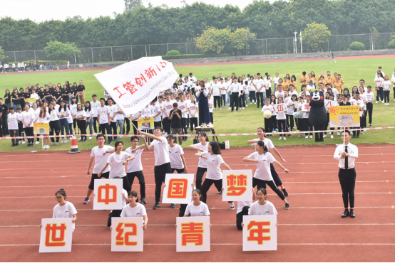 如果说秋日清晨尚还留有凉意,那么同学们方阵行进时迸发出的热情与活力则足以驱散一切寒冷,开幕式上,各班穿着整齐大方又独具风格的班服,用变换各异的方阵、嘹亮激情的口号、昂首挺胸的步伐,表达了商院学子热爱运动,阳光向上的体育热情。