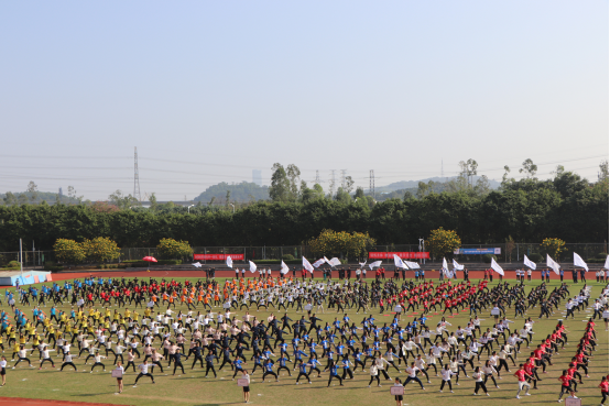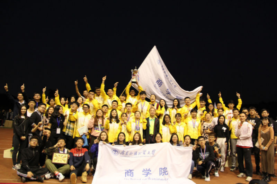 在开幕式中,365英国上市公司师生代表参与中国传统拳术——“蔡李佛拳”大型团体表演,表演者步伐灵活稳健,拳路刚中带柔,赢得观众阵阵掌声。365英国上市公司方阵在入场式高喊藏头诗“商院勇夺冠军”的口号为体育健儿加油助威,开启了本届校运会的夺冠之旅。