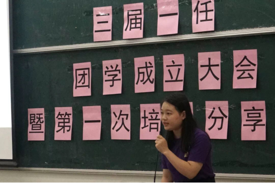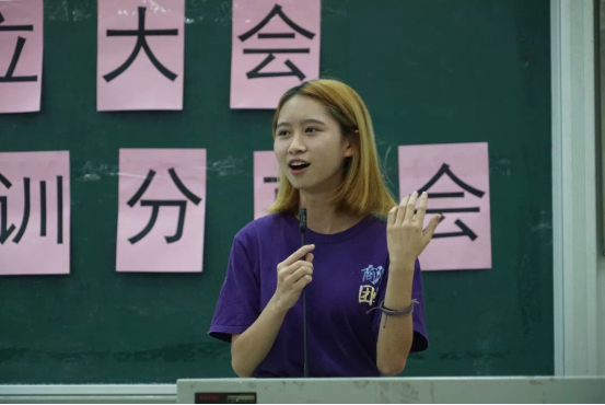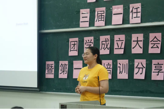 而后,朱艾煌上台发言。她为新干事们介绍了团委员工会的组织架构和宗旨,使大家对团学有了更深入的认识。之后便开始展示团学风采,通过每个部门温馨的团建照片,大家看到了一个友爱团结的团学大家庭。朱艾煌副主席还为新干事们介绍了团学各部门的部长与副部长,这增加了各部门之间的了解,拉近了各部门的距离。