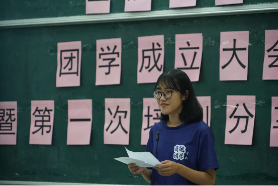 随即,新晋干事代表宋子欣分享了她的工作初体验。她首先提到了自己一个月以来的成长——例会上大胆分享,写策划,做推送等能力得到提高。再谈及了部门成员关系变化,在这一个月的时间里部门干事从初来的尴尬羞涩逐渐熟络亲密,最终变为一个融洽的大家庭,互帮互助,团结友爱,让她感受到了温暖与善意。最后她深情表白团学:“遇见最好的你们,成就更好的我们!”
