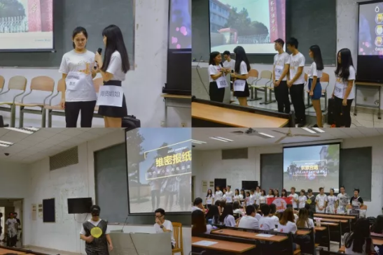 九色鹿服务队的报告以九色鹿历险记为主线展开,开头活泼可爱的PPT瞬间就吸引了同学们的眼球,定下了欢快的基调。接着,一幕话剧表演展现了下乡的哥哥姐姐们对孩子们情感世界的关怀和温暖,带来暖暖的感动。接下来几位队员的“报纸维密秀”更是创意十足,全场掌声热烈不绝。他们的报告以回顾下乡剪影与合唱队歌作结。最终九色鹿服务队以他们精彩的表演荣获一等奖!