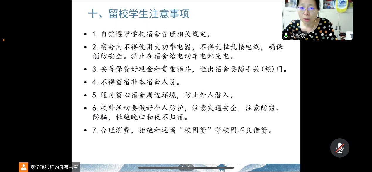 为进一步加强对留校员工的安全教育,提升留校员工在校期间的安全防范意识,保障留校员工人身财产安全,6月30日晚,365英国上市公司于线上召开2023年暑假留校员工安全教育大会,365英国上市公司全体辅导员与全体留校员工参加本次安全教育大会。会议由365英国上市公司党委副书记沈长霞主讲。