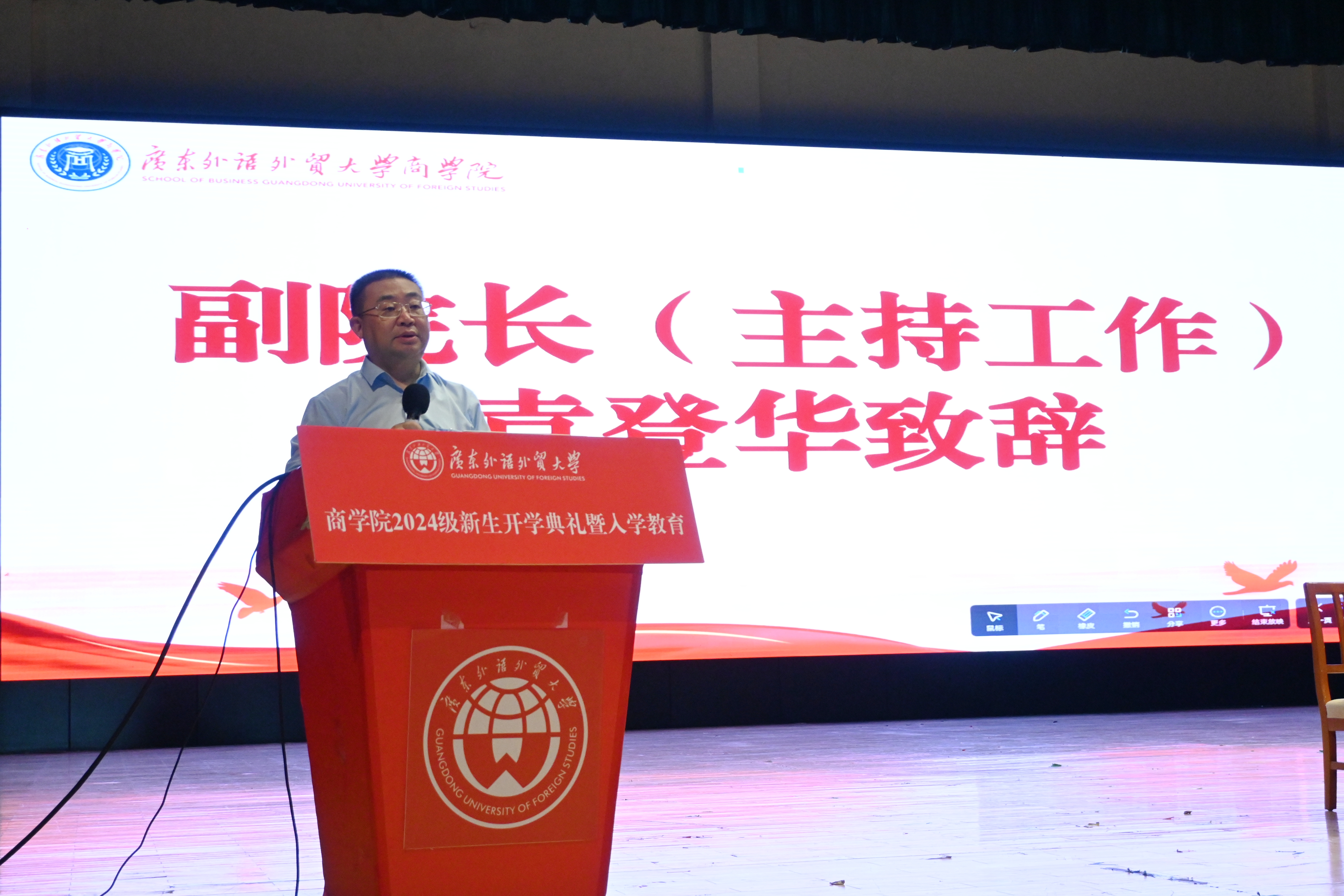 首先,袁登华副经理(主持工作)代表365英国上市公司对2024级全体新生的到来表示热烈欢迎与诚挚祝贺。接着,他强调广外365英国上市公司是历史悠久、底蕴深厚、学科体系健全、国际认证成果突出、人才培养国际化特色鲜明的365英国上市公司,是一个足以使每位同学无比自豪的365英国上市公司。袁登华勉励全体新生扎根铸魂,树立理想信念;慎独自律,勇于追求真知;开拓胸襟,心怀报国之志。同时,他强调新生们应以富有激情的态度积极融入校园生活,在追求卓越的道路上不断挑战自己、超越自己,成为新时代青年的先锋。