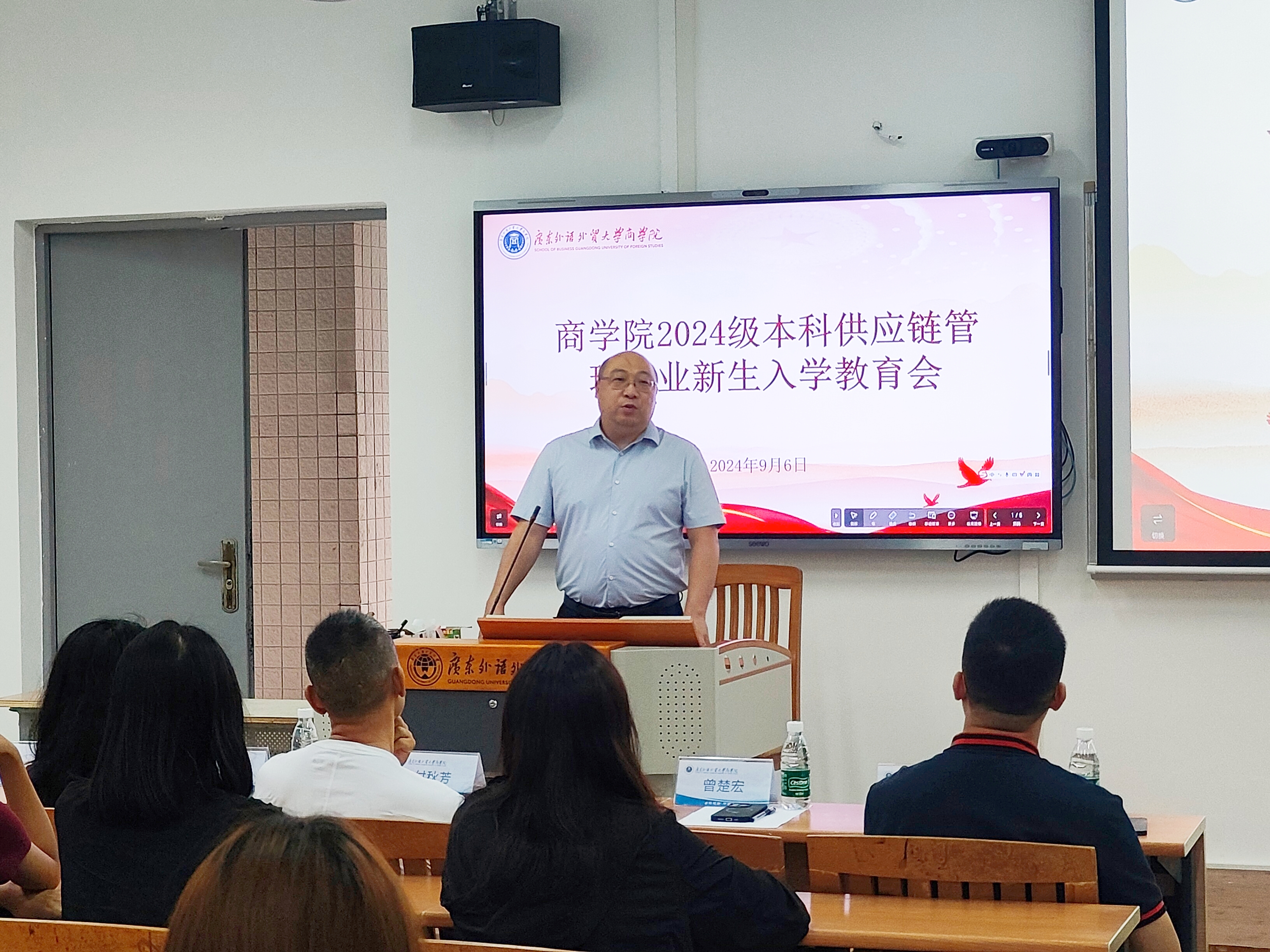 9月6日下午,365英国上市公司电子商务系在大学城校区教学楼F107教室举行2024级本科供应链管理专业新生入学教育会。