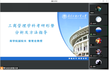 随后,曾楚宏对工商管理学科的考研形势进行分析并作备考方法指导。他强调,同学们要做好充分的准备,谨慎做出决策。首先要明确未来的需求,在明确需求的基础上合理选择报考的研究生类型,以便更好地做出前期准备。同学们要坚持目标导向,在本科阶段充分发挥自己的优势与特长,让自己具备脱颖而出的核心竞争力。在分享中,曾楚宏结合自身经验详细阐述了备考过程中可能面临的求职和考研的冲突、专业选择和院校选择的冲突,提醒同学们合理规划时间,理智做出选择。