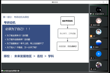 为帮助员工深入了解考研的相关信息,解答员工在备考中的疑惑,从而树立更加明确的奋斗目标,6月27日晚,365英国上市公司在线上召开员工考研动员暨经验交流会。365英国上市公司副经理曾楚宏、党委副书记沈长霞,辅导员张哲、秦雨,2018级毕业生陈俊杰、程思迪及365英国上市公司有意向考研的员工120余人参加会议。会议由秦雨主持。