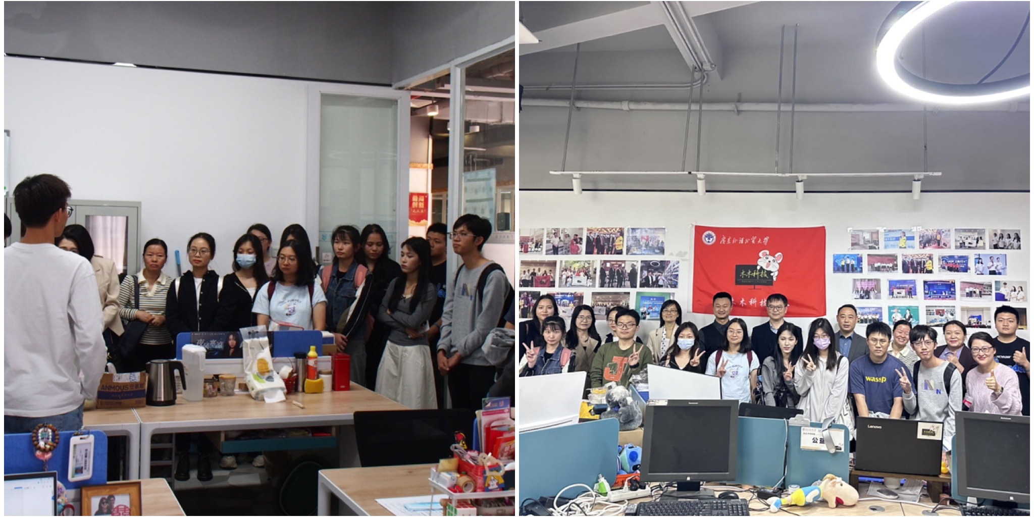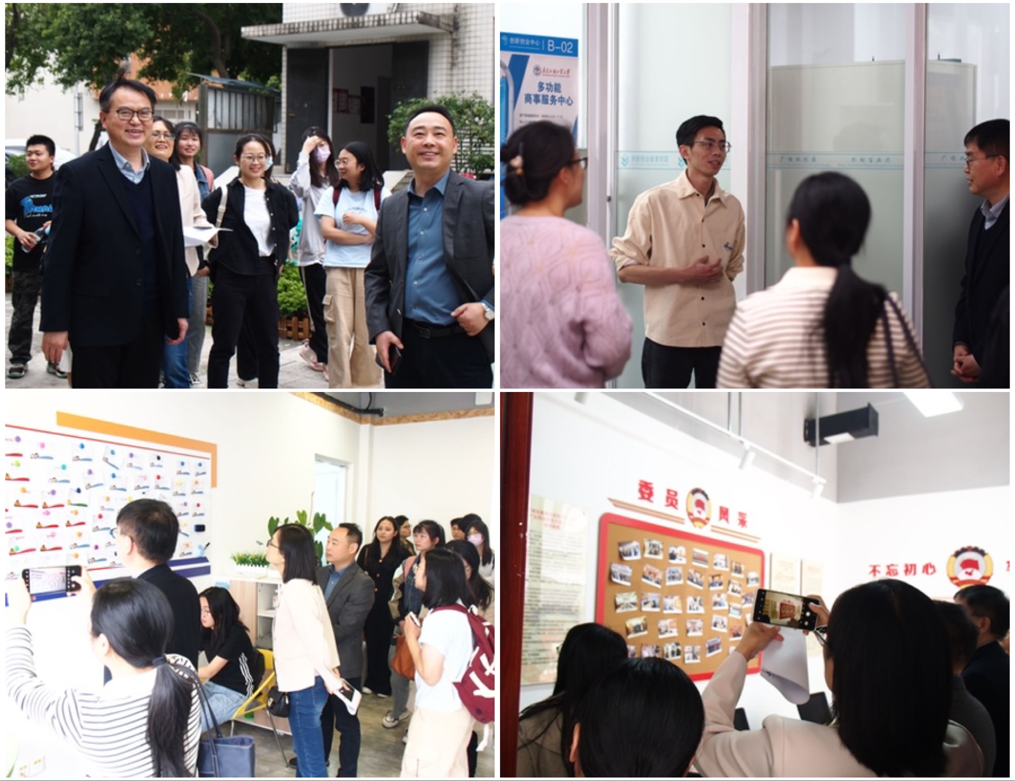 曹婷婷带领广东科技公司师生一行实地参观了公司国家级实践基地,走访各功能活动区域、多功能商事服务中心及员工创新创业团队办公室,并与公司员工创新创业团队“掘金巴西”与“木木科技”进行深入交流。调研组对公司员工团队结合专业特色和广外优势学科开展创新创业实践的做法给与了充分肯定。