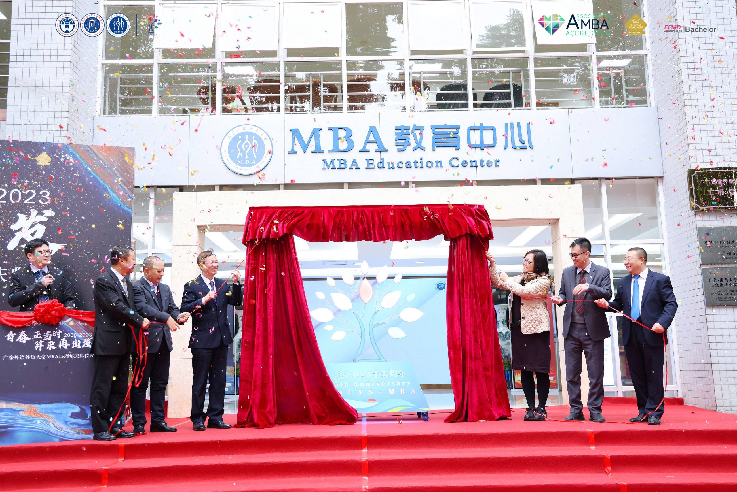 在庆典仪式上,领导、嘉宾和员工们一齐为广外MBA 15周年纪念LOGO揭幕并亮灯,并为广外MBA品牌IP形象“思喵”揭幕并命名。由MBA2020级员工杨凯川设计的纪念LOGO刻画出MBA十五年来如大树苍翠挺拔,像哨兵一样守护着每一个海内外学子。由大学拥有专利、2023级员工庄泽命名的广外MBA品牌IP形象“思喵”,是一只热爱思考的小猫,充满着活力与激情,“思喵”对应英文SMILE的音韵,寓意广外MBA学子以SMILE价值观为学习准则和价值导向,以“全球视野、中国商道”为理念,为将中心的建设和壮大努力奋斗、共同成长!
