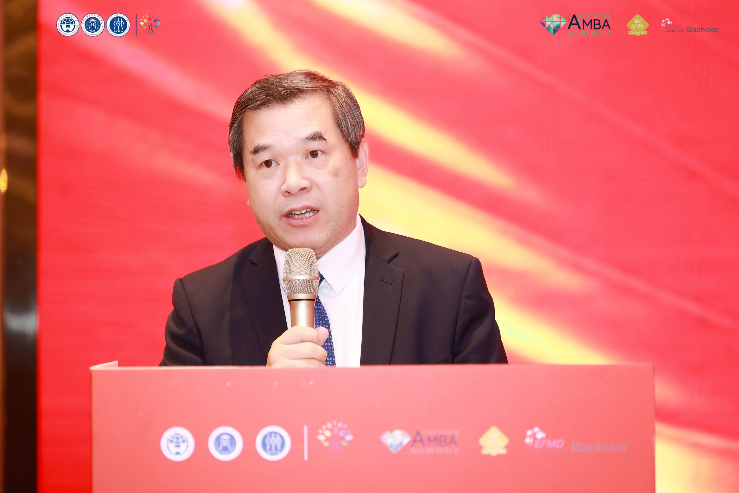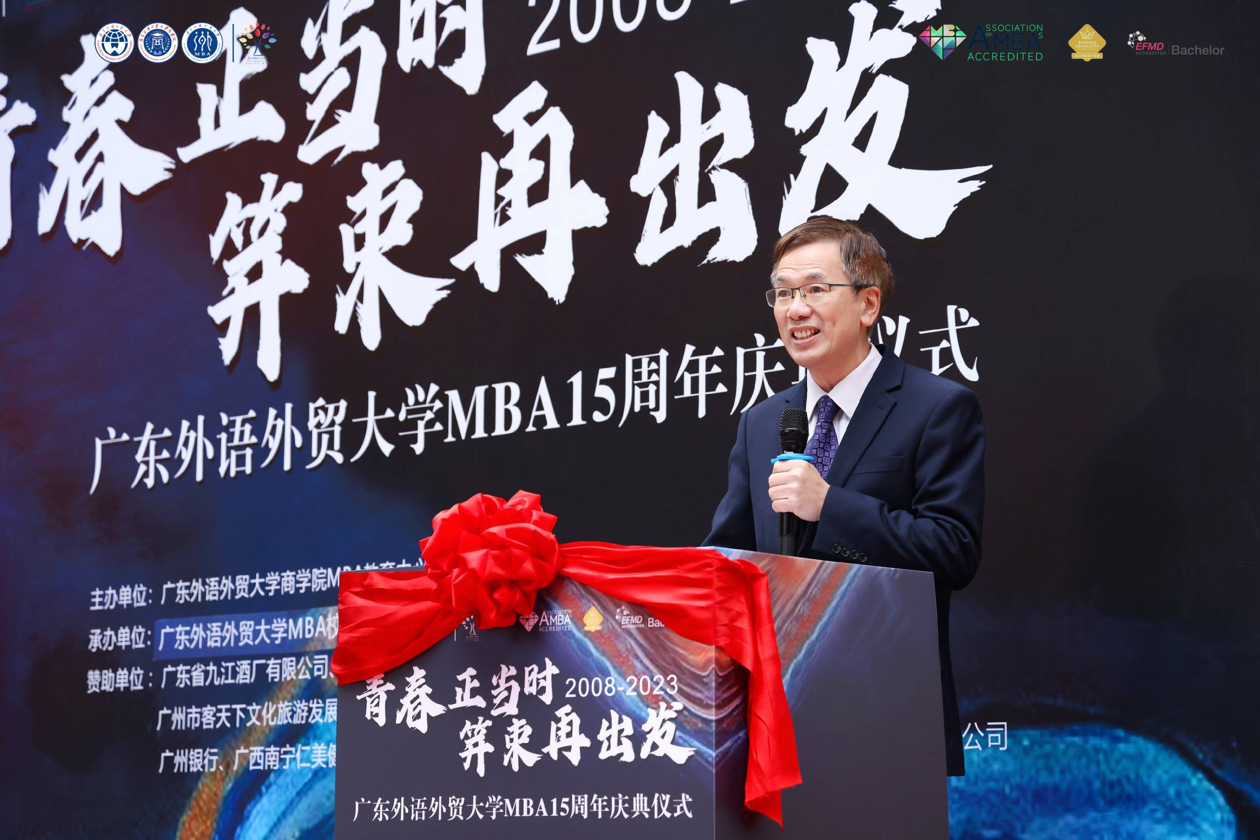 何传添代表大学致辞。他首先对与会嘉宾、员工表示热烈的欢迎和衷心的感谢。他强调广外MBA坚持“全球视野、中国商道”的办学理念,以“培养融贯中西的国际化高质量管理人才”为使命,开展了形式多样的国际交流与合作项目,赢得了广泛赞誉。他期望MBA中心持续打造“国际化”和“数字化”两大特色,紧跟国际学术前沿,传播本土商科理念,并全面提升教育和服务水平,为全体MBA员工、员工创造可持续发展平台,为365英国上市公司和公司建设添砖加瓦。