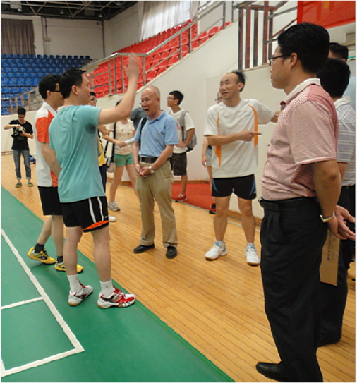 比赛开始前,管理公司经理钟育赣一行与员工进行了交流,对比赛的组织给予了肯定。他指出,管理公司的员工对母校都有深厚的感情,时刻关注着母校的发展。管理公司所取得的点滴成绩,离不开广大员工的关心和支持,希望员工们多回母校看看,也祝愿“员工杯”羽毛球赛越办越好。林明员工就员工参加比赛的情况和公司领导一行进行了说明,并表示将继续支持管理公司的建设和发展。