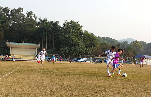比赛开始之前,双方队长讨论赛制,最终确定比赛分为三场,分别为上场、中场、下场,每场进行半个小时。紧接着,公司员工足球俱乐部的员工王豪对自己的队员进行分配。下午3点20分,比赛开始。双方的节奏都比较慢,他们并不急于进攻,而是不断调整,逐渐去适应比赛的节奏。比赛进行约20分钟后,双方逐渐进入状态,比赛进行得越发激烈。两队各有攻守,上场比赛过程结束,香港雄鹰队赢得两分。
