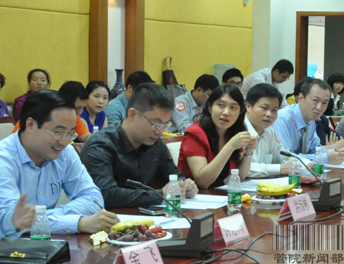会议伊始,罗海洋致开幕词,并鼓励员工做自我介绍。与会员工积极发言,回忆员工年代,畅谈生活感悟。一位88届的“骨灰级”员工说:“毕业20年了,我们都是喜欢怀旧的,非常感谢母校给我们这样一个平台,让我们有机会聚在一起。”各界员工纷纷积极进言献策,他们建议,要让本次会议起到“承上启下”的作用“上”指传承管院精神,“下”指员工和母校之间广泛联系,并将这种纽带关系渗透到业务和生活中,互相帮助,“共同撑起一片天”。