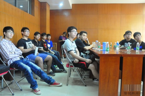 座谈会现场,同学们听凌雄辉作项目介绍