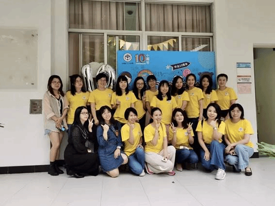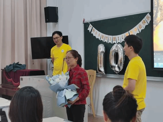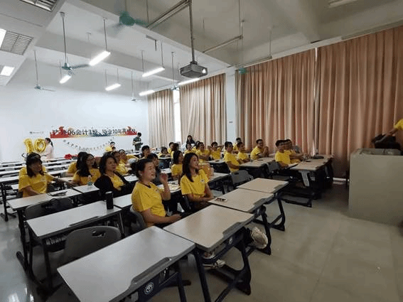 员工们在校园里拍下这张有纪念意义的班级合照,以期十年之后再来回忆美好旧时光。