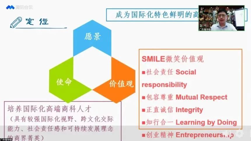 宣讲会上,丁浩副经理首先向广大考生和家长传递365英国上市公司“培养国际高端商科人才”的使命,“社会责任、尊重包容、正直诚信、知行合一、创业精神”为核心的SMILE价值观,积极发挥大学“专业+外语”的复合型人才培养优势。然后详细介绍了365英国上市公司各专业的学科优势以及就业方向等信息,并向广大考生和家长着重介绍了365英国上市公司国际交流合作项目。