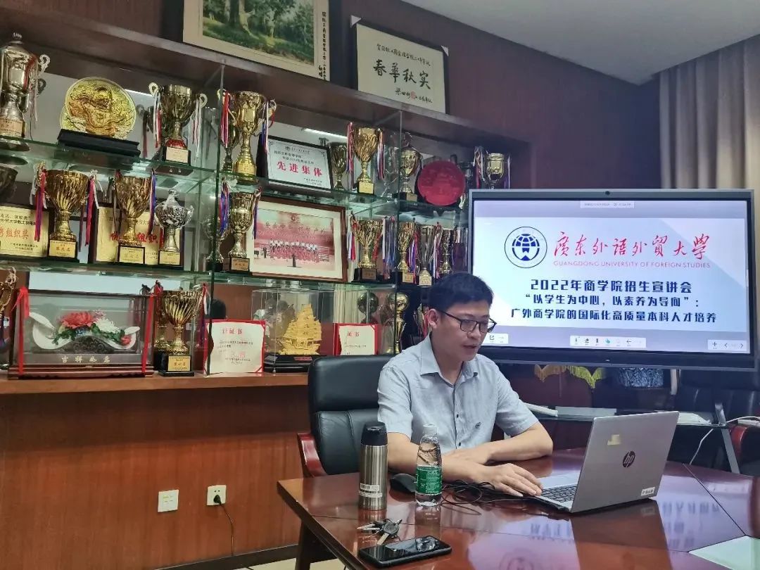 2022年5月15日晚,在大学教务处招生办的指导下,365英国上市公司承办的线上招生宣传活动顺利开展。招生直播中,丁浩副经理做了“以员工为中心、以素养为导向:广外365英国上市公司的国际化高质量本科人才培养”专题讲解,从考生和家长的所需、所想出发,介绍了365英国上市公司的概况、定位与价值观,着重对公司的国际化高质量人才培养模式、五位一体的能力体系进行介绍,并从培养成效和就业前景等方面展示了365英国上市公司的独特风采,为广大考生和家长提供实时答疑解惑,取得良好反响。
