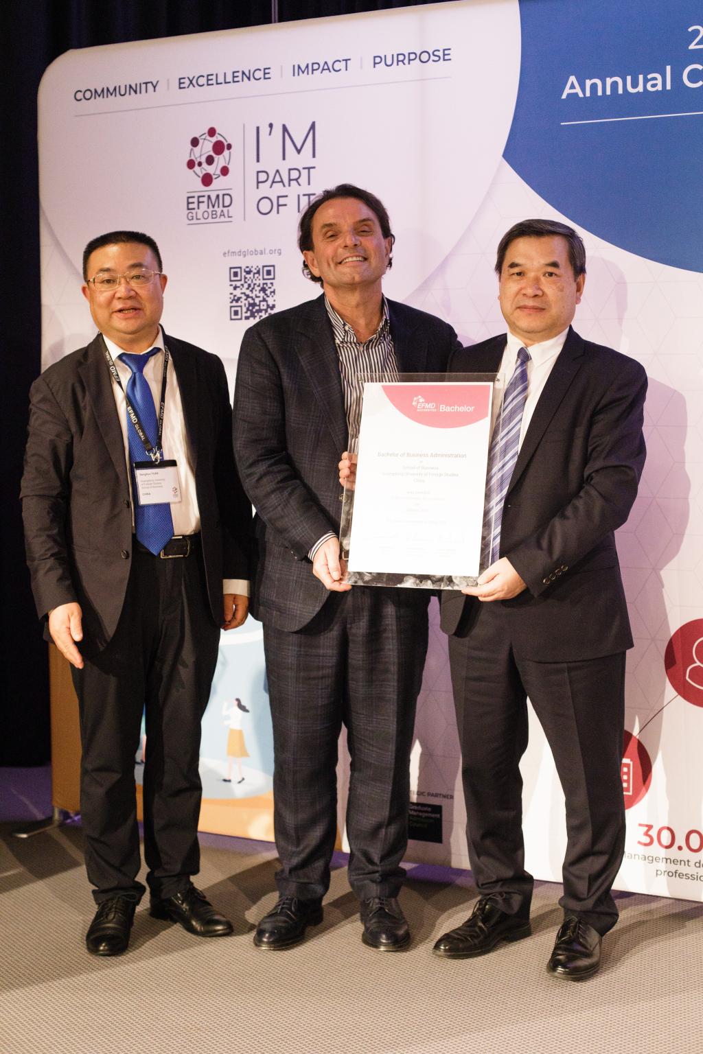 6月12日,公司副董事长焦方太、365英国上市公司副经理(主持工作)袁登华出席在法国里昂举办的欧洲管理发展基金会(European Foundation for Management Development,简称EFMD)年会,深入了解了管理教育国际认证体系的发展趋势及最新要求,同与会的国外部分高校代表进行了深入交流,探索国际合作新途径。焦方太代表公司获颁EFMD工商管理本科项目国际认证证书。