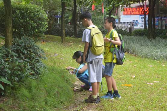 8月21日上午,义工带营员来到黄埔公园开始了丰富的户外拓展课程。当天的任务是分组拍摄不同的植物种类,并分别用中英文写下拍摄植物的名称。