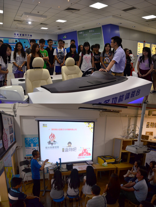 同样以创新为指引方向的柴火创客在这一天的下午也迎来B线同学。“当我进了这一间摆满DIY产品的房间时,我还以为自己进的是一家精品店”,毛同学毫不掩饰地表现出她的激动之情。这位同学口中所谓的“精品店”实际上是柴火创客空间。创客由一群爱好创造的青年人建立,他们创造了“图书馆”和“书店”合二为一的共享资源和低成本的运行模式,并以企业形态为社会服务,其负责人在工作坊里通过PPT和同学们分享柴火创客的成长历史,成果和作用影响。他提出,创新发明是创客的灵魂,没有创新,就没有创客的未来。最后,他还热情地邀请广大有创新意识的老员工加入他们的行列。