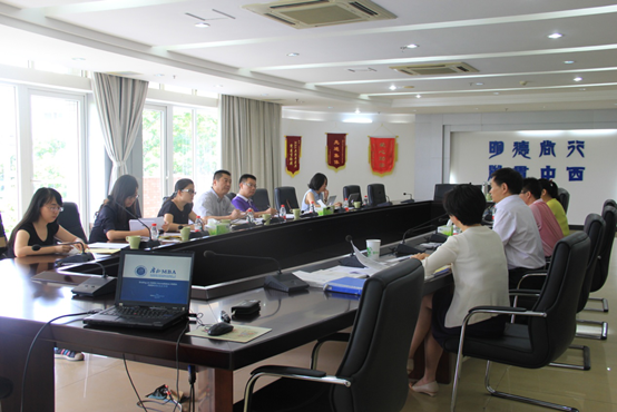 首先,许志超代表公司对到访同行致以热情的欢迎。接着,朱文忠介绍了公司的发展历程、团队队伍、办学特色与优势。在聆听了乜标对浙江工商大学MBA公司的简介后,贾佳向来访同行分享了公司AMBA国际认证的历程及心得体会。朱文忠、梁洁、贾佳还与来访嘉宾就MBA办学特色的凝练、AMBA国际认证自评报告写作等话题进行深入的讨论与交流。最后,乜标一行七人还考察了公司MBA中心专用实验室、AMBA国际认证Baseroom、教室等硬件设施。