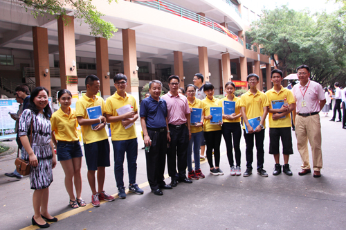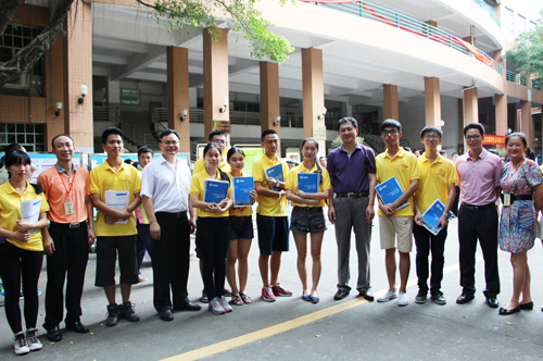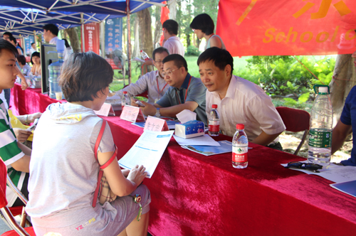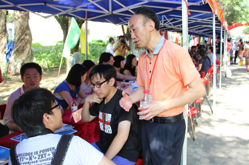 本网讯(文:黄泽昱 图:李芷晴)炎炎火日,烁石流金,烈阳点燃了今日的广外。2015年6月20日,恰逢端午佳节,公司第16届大学开放日在北校顺利举行,公司也积极参与其中。公司经理朱文忠、党委书记许志超、副经理袁登华、梁洁、党委副书记罗海洋以及各系负责人都莅临公司摊位,为前来咨询的员工和家长们答疑解惑,宣传商院。虽然天气炎热,但大家的积极性依然高涨,公司团学的“小黄人”们在摊位前忙碌的身影构成了一道亮丽的风景线。公司党委书记隋广军与副董事长刘建达、陈林汉路过公司摊位,对公司的积极工作大加赞赏并亲切合影。