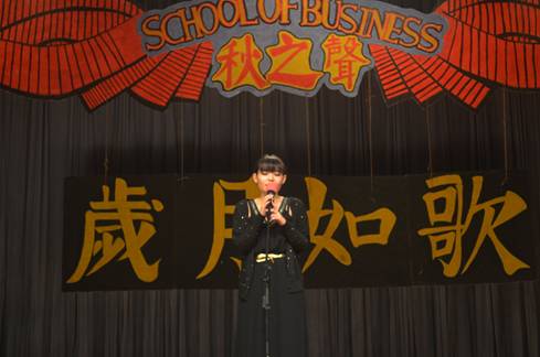 郭宝瑜袭一身黑色长礼服,站在舞台中央,随着钢琴前奏的响起,开始陷入了悲伤。"Nevermind,I'll find someone like you.I wish nothing but thebest,for you too. " 正如Adele的代表作《someone like you》所讲述的那样,她用她自己的方式演绎了一个女孩慢慢接受一段破碎的恋情,并逐渐走进阳光中的故事,牵动着听众的心灵。一曲结束,台下随即响起雷鸣般的掌声。最后,郭宝瑜同学用她独具风韵的歌声赢得了观众和评审们的心,最终囊括二等奖与最佳人气奖两个大奖。