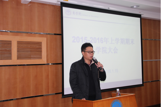 接着,两位退休教师上台发言,掀起了年终总结大会的高潮。曾坤生教授分享了十五年的教学之路,总结出“踏踏实实做人”和“坚守政治、道德、学术底线”的人生感悟。黄立军教授引用“别有一番滋味在心头”来表达自己内心的惜别与不舍,通过一个“中心”,两个“基本点”、三个“忘记”、四“要”和五“老”来表达自己对未来美好生活的憧憬。