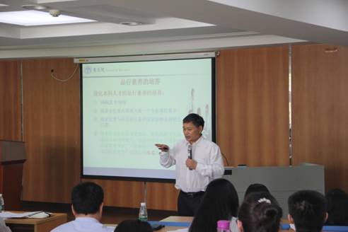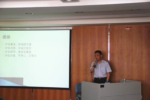 本次大会专门邀请了教育部本科教学评审专家、英语教育公司经理董金伟教授对教职工进行了培训。他结合自身的评审经验,从重点、范围、细节和态度四个框架出发,培训内容包含了宏观四个度、中观三层次、微观全覆盖等,由点及面地详细指点了做好评估工作的方方面面。