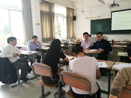 As part of the university'steaching-quality-enhancement program, Professor Li Yongning commenced his openclass in Strategic Management, with English language medium of instruction,this Tuesday morning. The lesson was given to the Innovation Class(1602). Dean Zhu Wenzhong and Associate Dean Ding Hao supervised proceedings.Faculty members Liu Xiaoqin, Qiu Aimei, Li Xiaohui and Chen Weizhenparticipated in the session, which was moderated by Dr Huang Lei, who is incharge of the English Instruction Program.