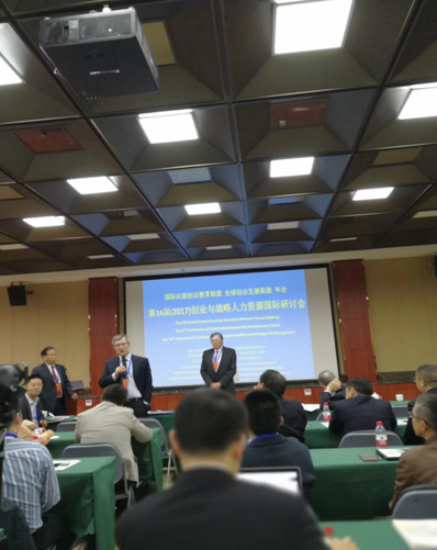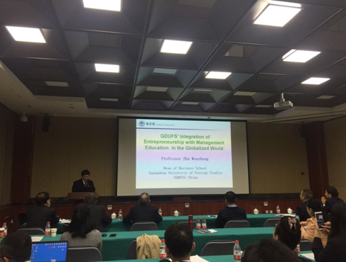10月23日-25日, 2017创业与战略人力资源国际研讨会暨第二届全球创业发展联盟年会在浙江大学召开,经理朱文忠教授、副经理袁登华教授和人力资源管理系主任安凡所教授应邀出席。朱文忠经理在研讨会上作了《GDUFS's Integration of Entrepreneurship with Management Education inthe Globalized World》的主题演讲。
