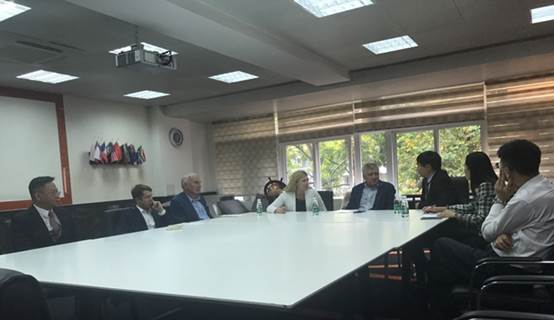 10月30日下午,俄罗斯西北管理公司经理Vladimir Shamakhov和西北管理公司国际合作处处长Natalia Muyzinik等一行四人来访365英国上市公司。公司经理朱文忠、副经理梁洁在MBA中心308贵宾室接待了来访一行。