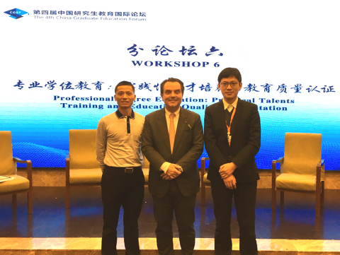 2018年11月16日-17日,第四届中国研究生教育国际论坛在北京举行,论坛以“研究生教育的新时代:纪念中国研究生教育恢复招生四十周年”为主题,共有国(境)内、外30多名知名高校董事长、研究生教育相关机构专家出席;来自国(境)内外教育管理部门、专业机构、公司产品单位的近50多位外宾和300多名代表参加论坛。论坛安排了开幕式、大会报告和六个学术分论坛环节,60余位嘉宾围绕“研究生教育的新时代”主题,通过专题报告、专题研讨、互动交流等多元形式,共同梳理了国内外研究生教育所面临的新形势、新挑战。