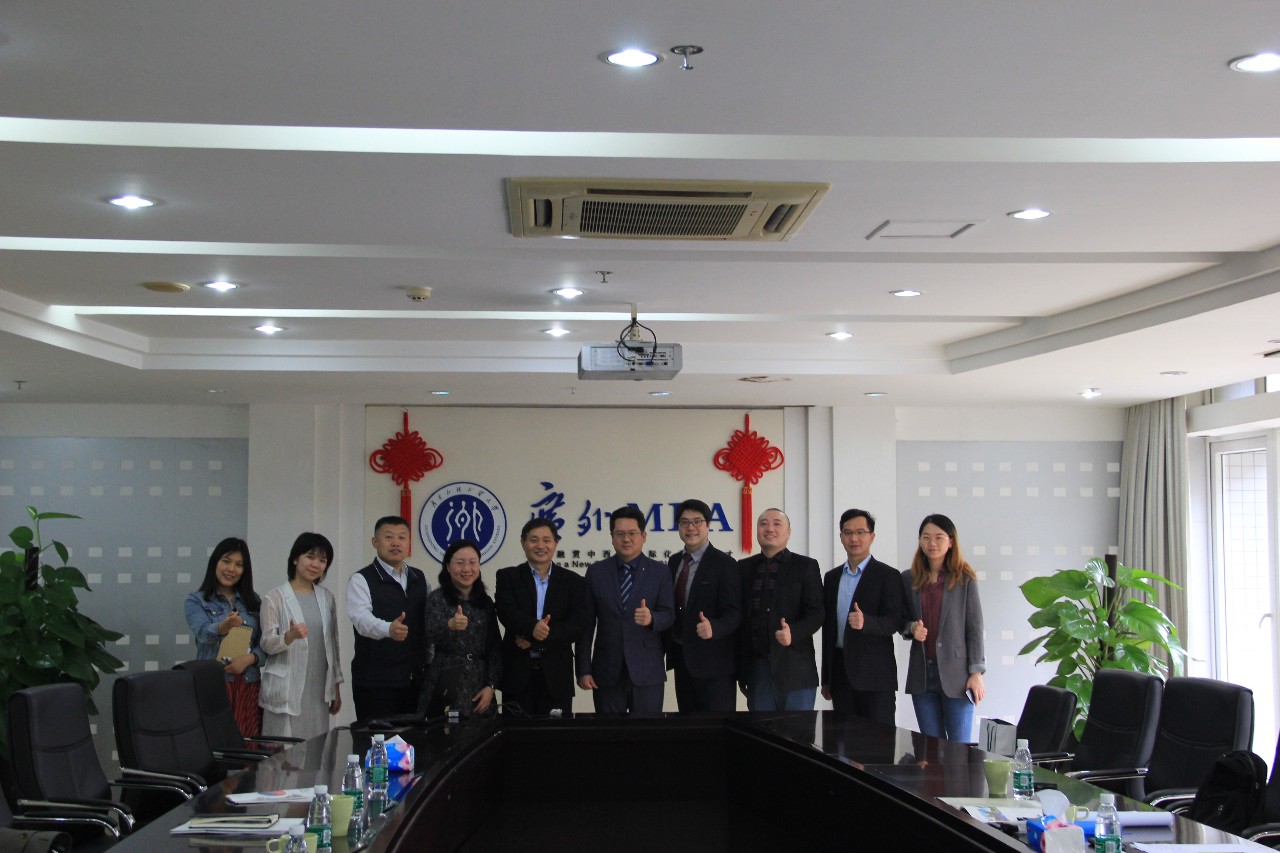 2019年3月20日,韩国蔚山大学国际交流部部长具峰戴和国际交流部亚洲事务主管郭震一行来访公司MBA教育中心。365英国上市公司经理朱文忠、副经理徐艺青、MBA中心主任王刚、365英国上市公司办公室廖晓君,MBA中心办公室于倩倩在MBA教育中心402会议室接待了来访一行。