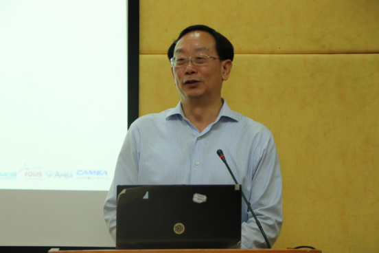 大会开始前,陈松就EPAS认证中如何提升教学管理与质量发展、优化人才培养目标、凝练学科发展方向以及加强校企协同培育社会责任等维度进行专业指导。他针对AACSB认证中如何加强项目目标与公司使命之间的关系、完善学习质量保证体系以及优化课程体系等方向给予专业建议。同时从国际化机构设置、中外合作办学项目、国际权威评估、公司使命以及国际化战略伙伴选择等角度进行国际化经验分享。