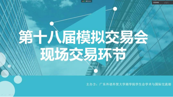 在比赛正式开始之前,朱文忠进行致辞。朱文忠赞赏了同学们即使遭受疫情影响,也依然能够在模拟交易会中以行求知、知行合一,发扬勇于创新、坚毅奋斗的攀登精神,扛起属于广外学子的学习使命。他表示,模拟交易会以“专业+英语”为基础的竞赛形式,提供了一个将专业知识与实践技能结合起来的平台,对于带动员工了解掌握专业英语,实现公司国际化教学及培养国际化人才的目标有重要作用。他对同学们结合专业知识的灵活运用和实践创新,以及当代老员工团结进取和开拓创新的精神风貌表示期待和充分的信心。他希望公司能继承传统、坚持初心,将活动做深做广,使活动形式继续完善、活动内容不断丰富、活动规模更加扩大。