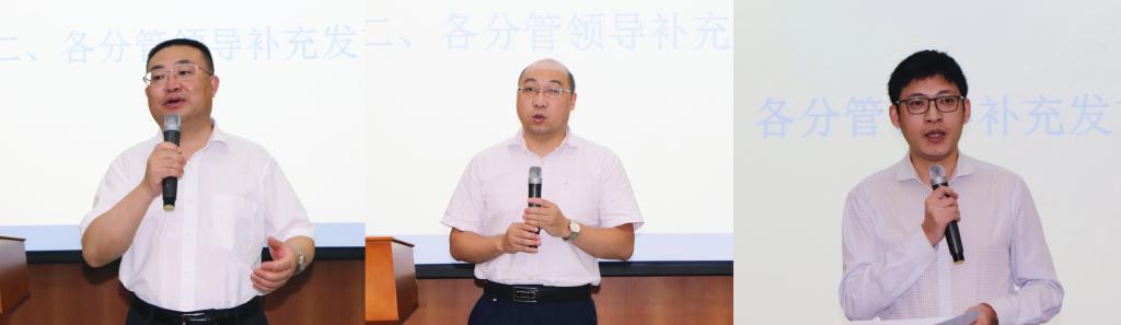 副经理袁登华、曾楚宏、丁浩、徐艺青,党委副书记沈长霞分别就公共服务、团队建设与科研管理、人才培养与教学管理、MBA招生与教学及国际交流与合作、员工工作等做补充发言。