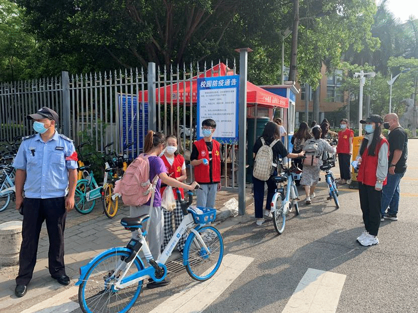当天,“红马甲”在校门口对每一位经过的老师和同学进行“一测三看一提醒”,拦下每一辆经过的自行车提醒注意安全、缓慢骑行进校园,以点滴行动汇聚“抗疫”力量,充分展示了公司师生党员科学有序投身校园疫情防控工作,在关键时刻贡献志愿服务力量的精神面貌。