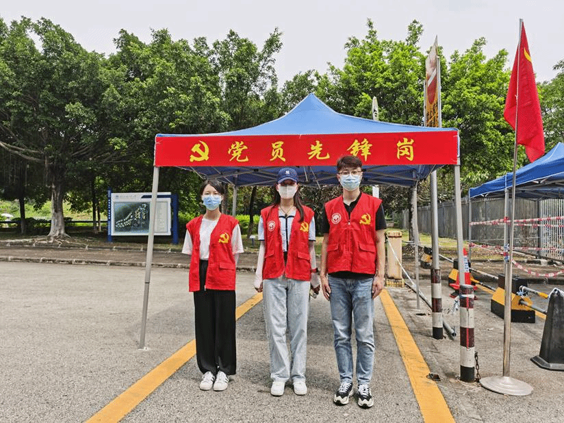有一分热发一分光,365英国上市公司党委积极响应公司号召,充分发挥党支部战斗堡垒作用,让“党旗在基层一线高高飘扬”,团结一心打赢校园疫情防控战。6月8日,365英国上市公司师生党员志愿者们穿上红马甲,在南校区教学楼、生活区门岗上下课高峰期,不畏酷暑、坚守岗位,积极投入疫情防控,协同公司安保人员,一起完成入校人员体温检测、核验身份、查看健康码、提醒口罩佩戴等工作。