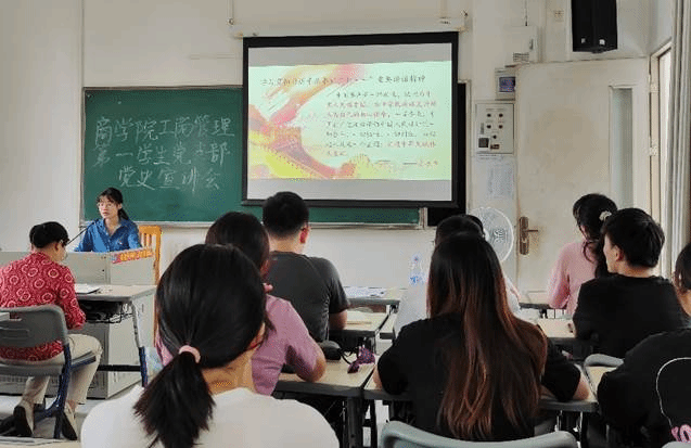 集团百年党史老员工宣讲团成员刘晓琪同学为工商管理第二员工党支部、市场营销第一员工党支部以及市场营销第二员工党支部带来以“中华民族伟大复兴进程不可逆转”为主题的宣讲,从经济建设及精神文明建设两个方面阐述实现中华民族伟大复兴为何已经进入了不可逆转的进程,并发出号召,呼吁青年党员一起践行“请党放心、强国有我”的青春誓言。