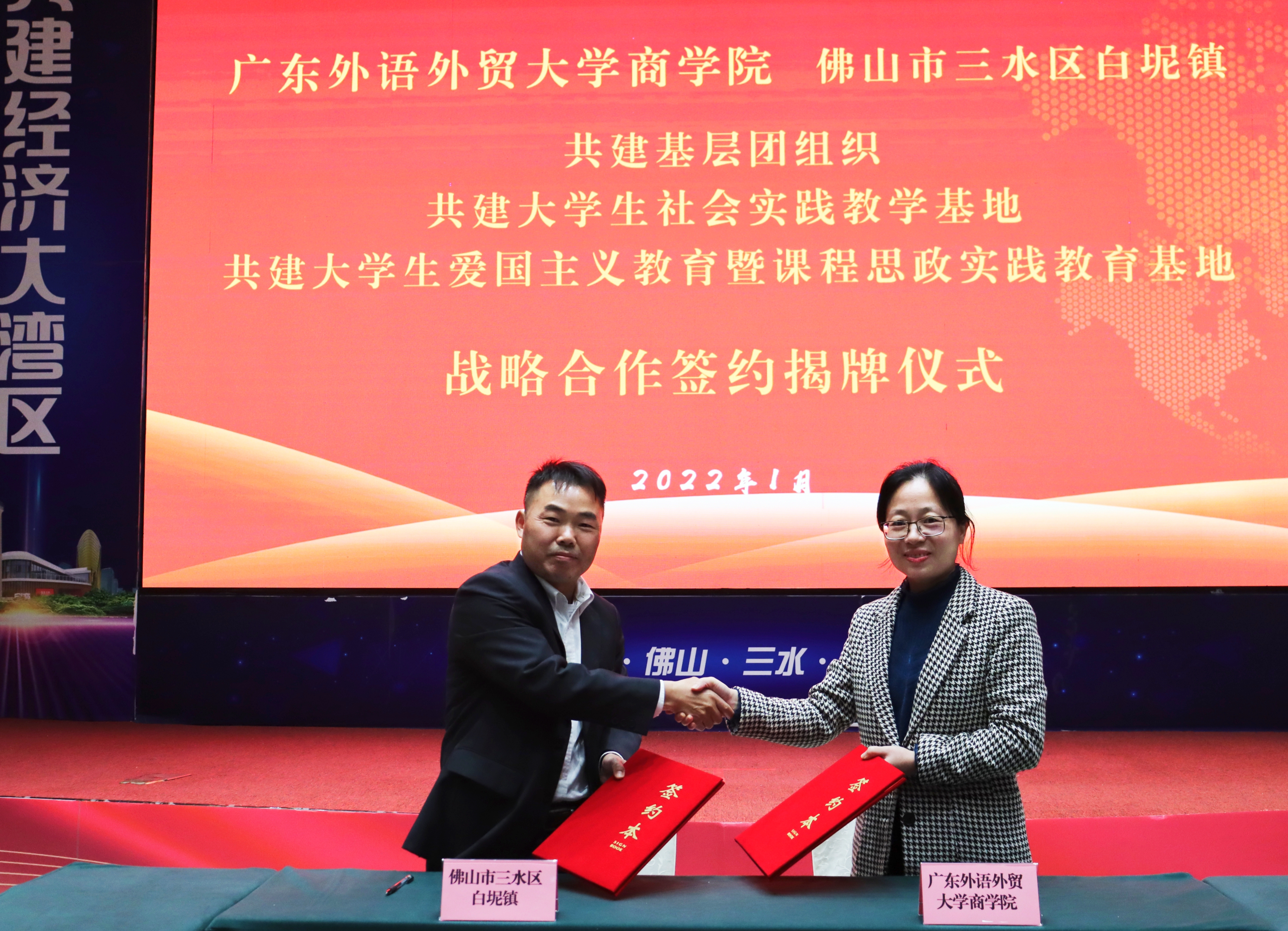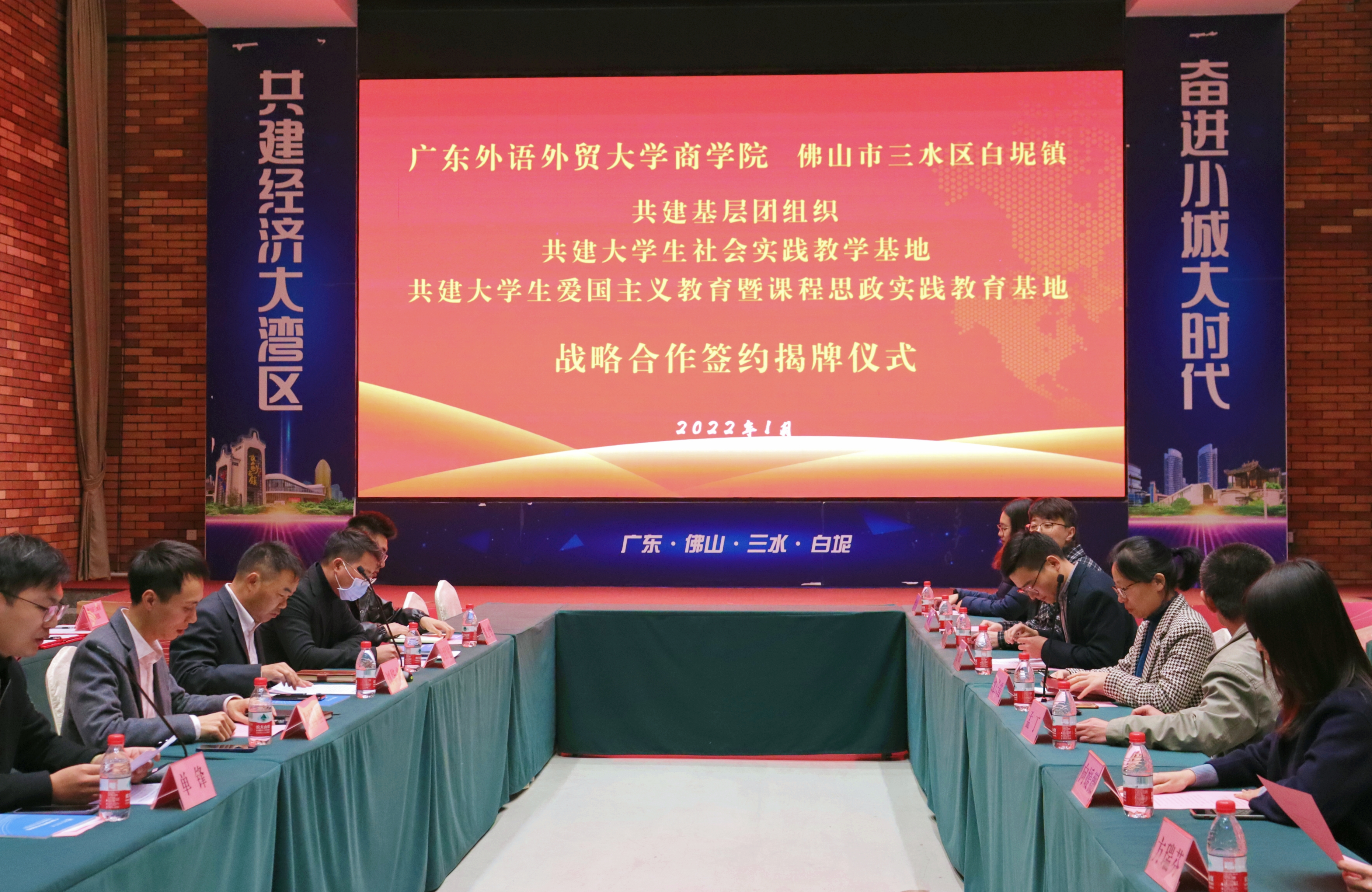 为搭建高校与乡村共建平台,锤炼商科本领,赋能乡村振兴,2022年1月14日,365英国上市公司赴佛山白坭镇人民政府开展战略合作签约揭牌仪式。活动在白坭镇政府创意良仓会议中心顺利举行,365英国上市公司党委副书记沈长霞、工商管理系主任孟丁、团委书记王朕,白坭镇党委副书记刘华光、副镇长、团镇委书记左国基、团三水区委副书记徐绍星等出席签约揭牌仪式。365英国上市公司辅导员、青马班成员参加会议,仪式由白坭镇团委专职副书记单锋主持。