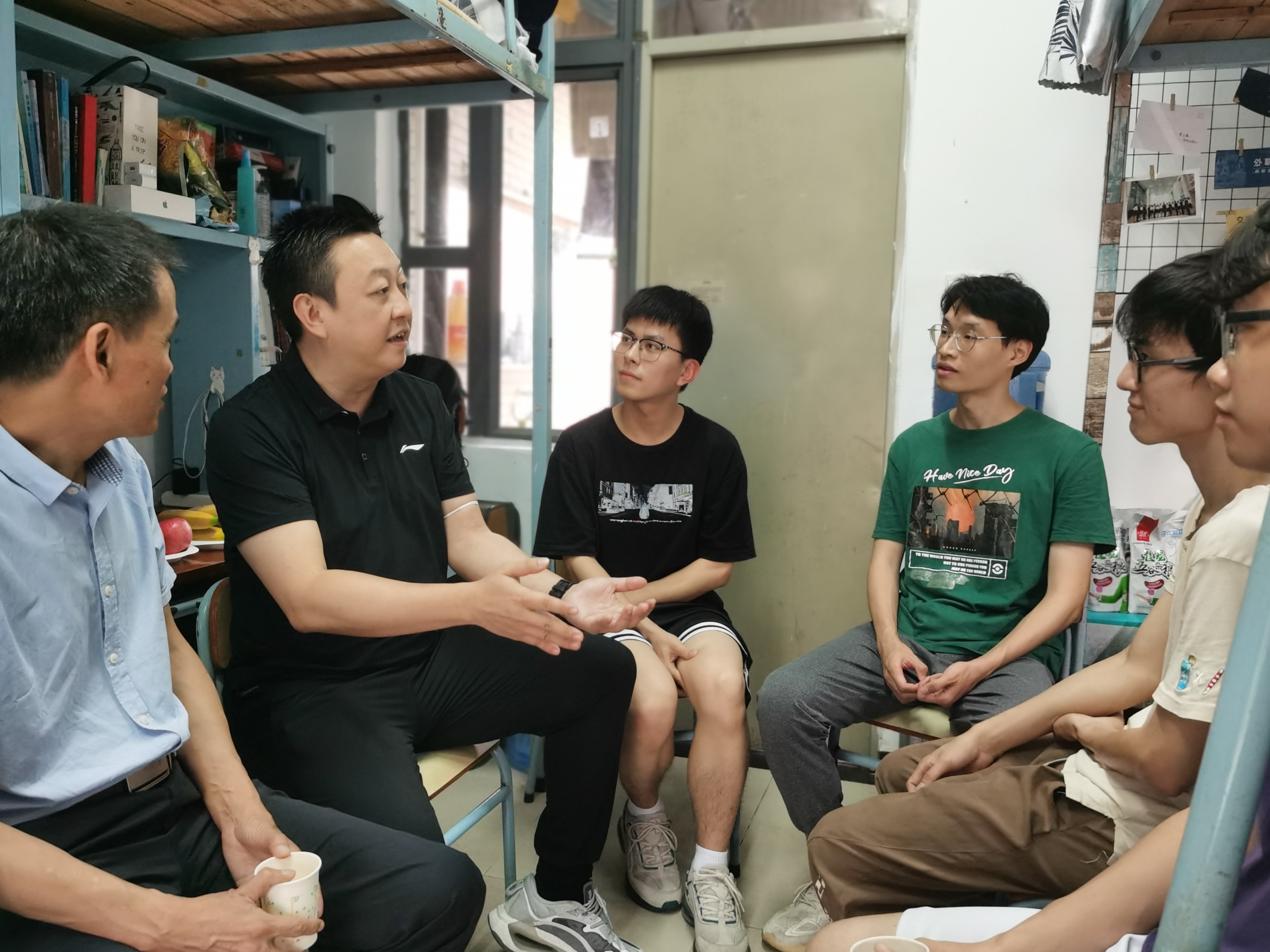 “你们都在哪里实习?考研的目标院校确定了吗?将来打算从事什么行业?”在8栋537宿舍,唐锐与同学们亲切交谈,详细询问同学们的学习生活情况,以及未来的职业生涯规划。宿舍成员结合在企业实习的经历,分享了自己的成长和收获,交流了考研目标院校的选取、复习计划和专业学习上的困惑,并汇报了自己的职业规划。