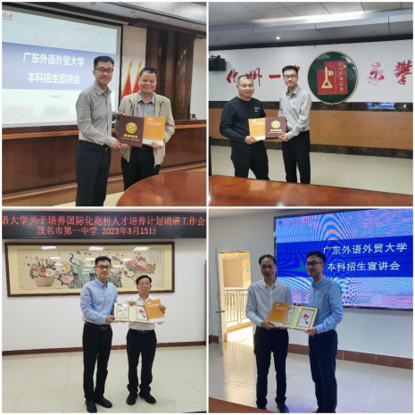 为落实公司对2023年招生宣传工作的要求,确保各项招生宣传任务有力推进,3月13日—15日,365英国上市公司党委书记肖喜明带领副经理曾楚宏、副书记沈长霞、人力资源管理系教师陈国海、工商管理系教师周宇、辅导员黄冠富一行赴茂名地区开展招生宣传活动。同行的还有公司员工事务与合作发展处冯思军。本次招生宣传主要深入到高州中学、化州一中、茂名一中和电白一中等四所中学,分别举行了座谈会和专题讲座。