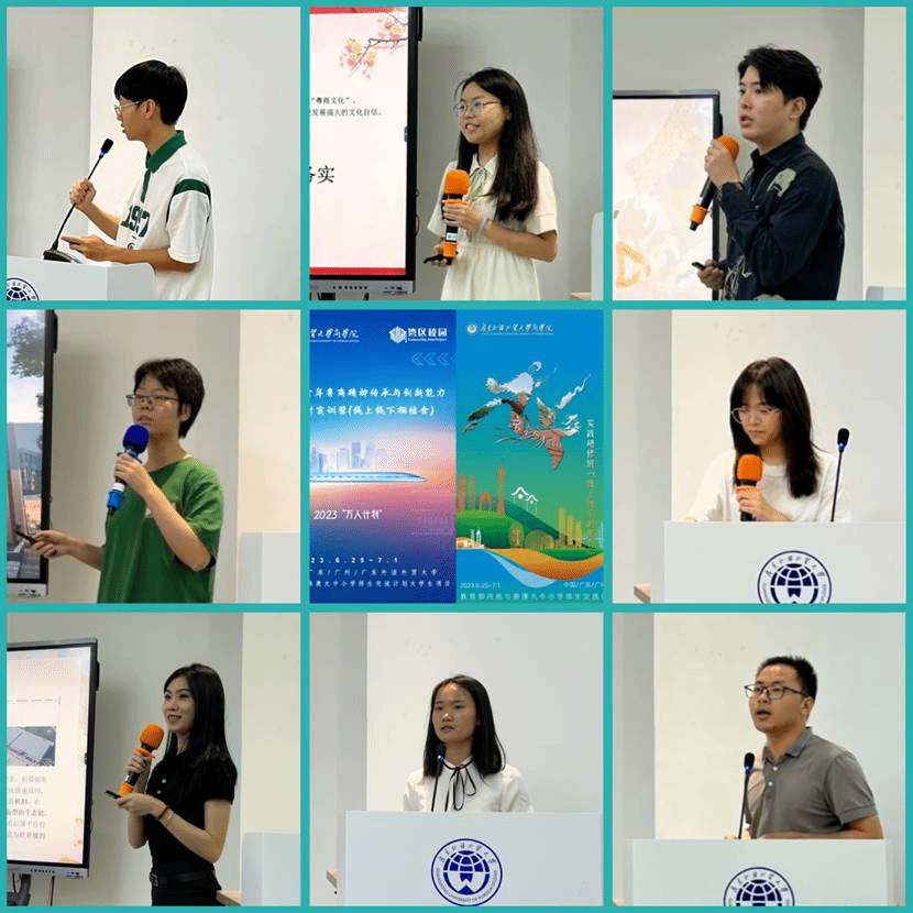 在结业仪式的学习成果展示与交流环节,学员以小组为单位分享了他们的学习成果,主题包括“粤港澳大湾区——合作共赢与区域发展”、“三分天注定,七分靠打拼——关于潮商那些事”等,充分展现学员对本次学习内容的思考和运用。