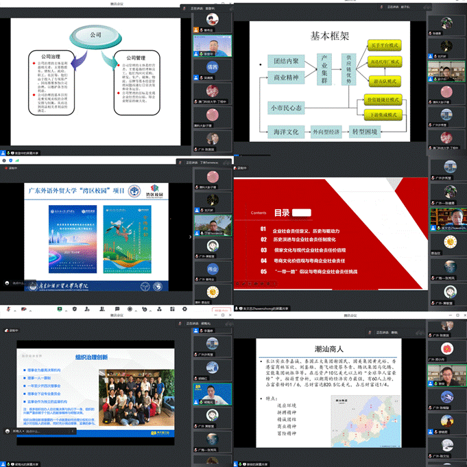 6月26日,“粤商精神”实训营和“古港新韵”研修班联合开班仪式于线上进行。广外365英国上市公司副经理(主持工作)袁登华、国际交流合作部副部长徐艺青、365英国上市公司副经理丁浩、人力资源系主任谢俊、项目学员共同参加线上开班仪式。开班仪式由丁浩主持。